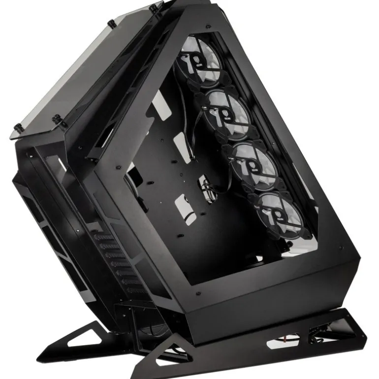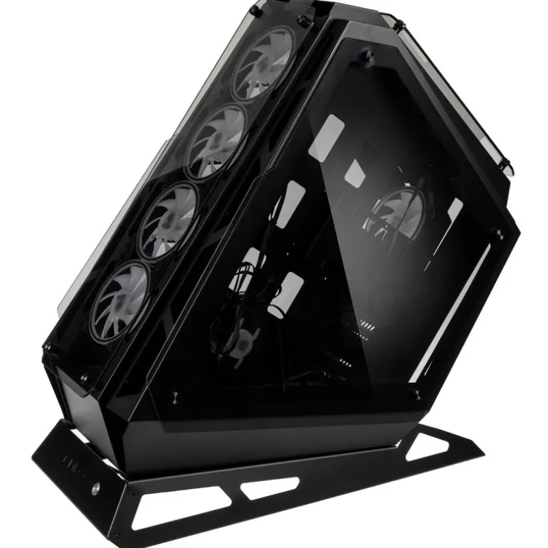 De vuelta con una venganza THICC, la edición UNIT de Big Chungus mejora varios aspectos de la carcasa original, incluida la actualización de los 5 ventiladores a versiones ARGB PWM de doble anillo. Sumado a eso, el soporte ahora es negro anodizado y viene preinstalado fuera de la caja. Mostrando su hardware desde todos los lados, el estuche es ideal para mostrar un circuito de enfriamiento de agua personalizado, y el hecho de que el estuche enorme brinda mucho espacio tampoco hace daño. Los materiales utilizados son de primera clase: los dos lados, el frontal e incluso la tapa son de vidrio templado sutilmente tintado. La base con el panel de E / S está hecha de aluminio. El marco utiliza acero recubierto de polvo negro de 1,0 mm de espesor.