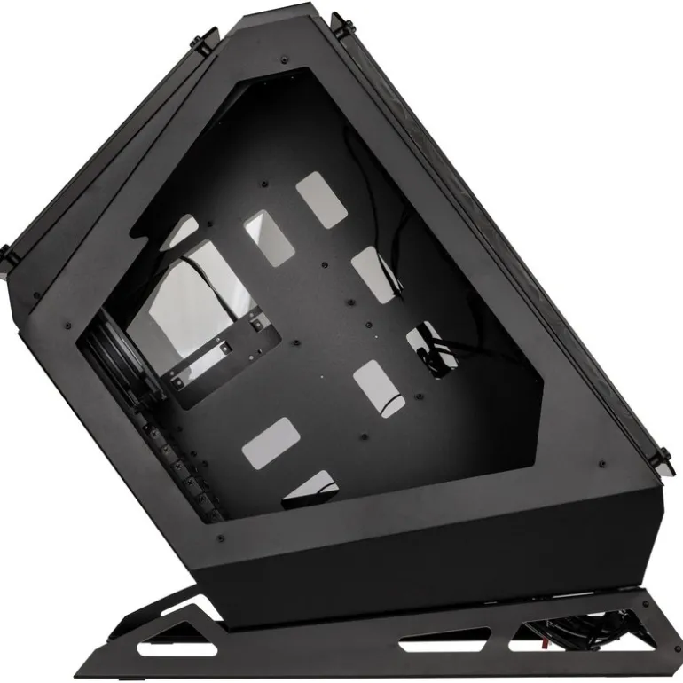 Gracias a los paneles de vidrio templado tintado en ambos lados, así como en la tapa y en el frente, Big Chungus es el lugar perfecto para un hardware de juego potente. Una placa base hasta el factor de forma E-ATX encajará en este marco espacioso. Se pueden instalar tarjetas gráficas de hasta 335 milímetros de longitud, con disipadores de CPU de hasta 175 milímetros de altura. Gracias a los grandes recortes en el marco, la carcasa sigue siendo notablemente ligera a pesar de su tamaño. Esto también asegura un suministro de aire óptimo desde el exterior.