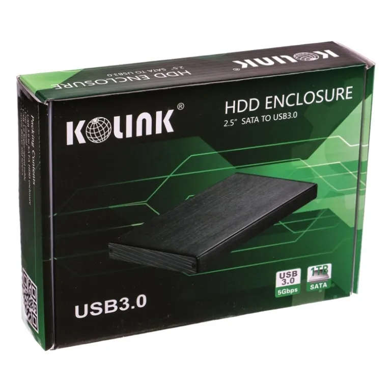 Carcasa externa de 2,5 pulgadas de Kolink para discos magnéticos, así como los SSD basados â??â??en flash con una altura de hasta 9 mm. La carcasa de color negro está hecho de aluminio cepillado, puede disipar el calor mientras opera un disco duro integrado eficazmente al aire ambiente.