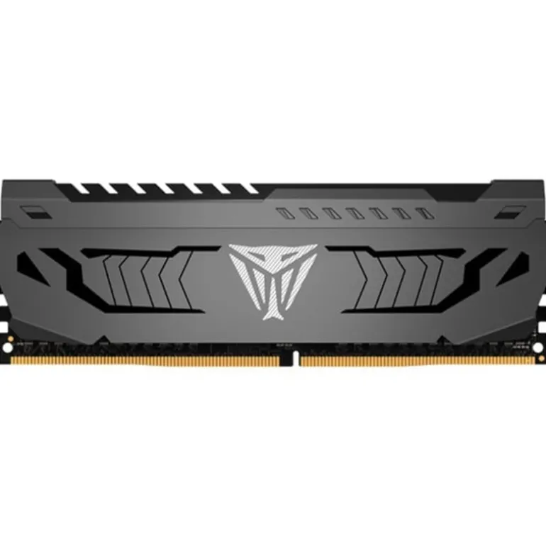 La Patriot Viper Steel DDR4 16GB (1×16GB) 3200MHz CL16 es un módulo UDIMM de 288 pines con perfil Intel XMP 2.0 y voltaje de 1,35 V, pensado para mejorar el rendimiento del PC con una configuración rápida y estable, en acabado gris.