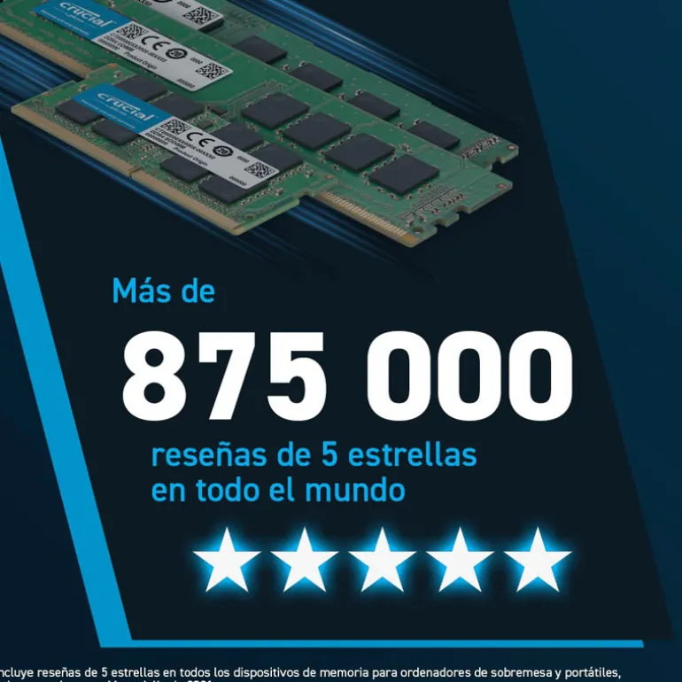 Como marca de consumo integrada verticalmente de Micron, millones de usuarios confían en Crucial por su fiabilidad, rendimiento y compatibilidad. Al contrario de lo que ocurre con los ensambladores de módulos, nuestra relación única con Micron nos ha llevado a colaborar en el campo de la ingeniería a un nivel mucho más profundo para sacar el máximo rendimiento a nuestros productos sin comprometer su fiabilidad. Con los más de 43 años de excelencia en fabricación que ostenta Micron y los más de 25 años de desarrollo de productos para el mercado de consumo de Crucial, las Crucial DDR5 ofrecen además una garantía limitada de por vida y un potente rendimiento en el que puede confiar. Cuando se trata de memorias, no se conforme con menos.