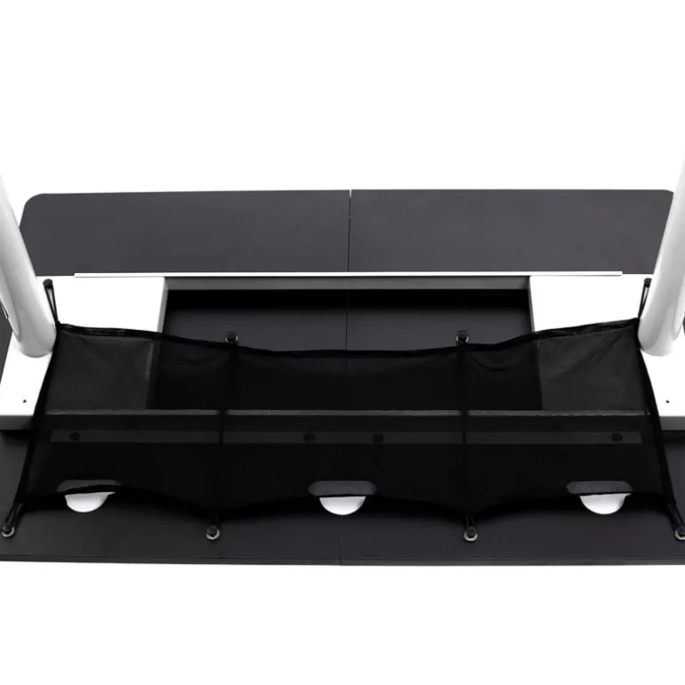 El Fratello tiene 3 cortes en la parte superior de la superficie que conducen a una cesta de malla que se sujeta firmemente contra la parte inferior del tablero para la gestión de cables.