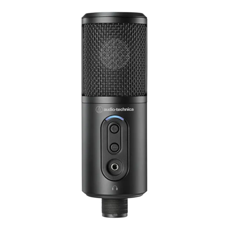 El micrófono también tiene un conector para auriculares con botones de control de volumen para subir/bajar el volumen para un control directo del audio. El ATR2500x-USB viene con dos cables de 2 m (USB-C a USB-C, USB-C a USB-A), un soporte para pedestal con rosca pivotante que se acopla perfectamente al trípode incluido o a un pedestal para micrófono convencional.