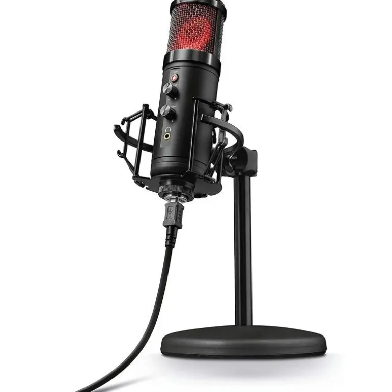 Micrófono Trust GXT 256 Exxo para streaming con iluminación rgb para grabaciones de alta calidad, streaming, podcasts, locuciones y música acústica.