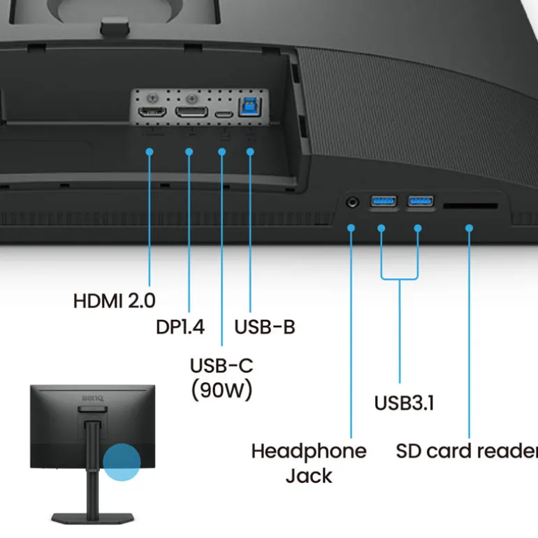 Rápido para transferir diversos datos y proporcionar energía de hasta 90W. Tus dispositivos Thunderbolt 3/4 son compatibles con USB-C en pantallas BenQ, asegurando una eficiencia de trabajo consistente y sin interrupciones.