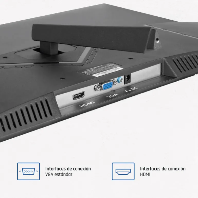 Equipado con puertos VGA y HDMI, este monitor ofrece múltiples opciones de conexión para adaptarse a tus necesidades, ya sea para trabajar o para entretenimiento.
