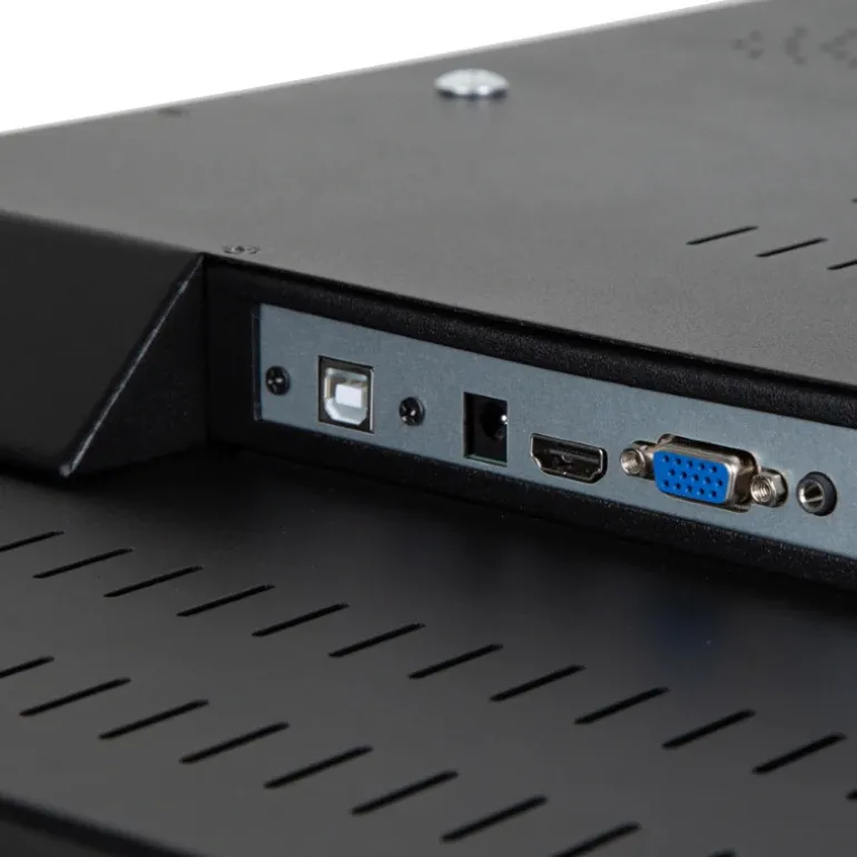 El monitor incorpora entradas VGA y HDMI para la señal de vídeo, lo que permite conectarlo a una gran variedad de fuentes: PCs, reproductores de señalización digital, equipos industriales, mini PCs o sistemas embebidos. La funcionalidad táctil se gestiona a través de un puerto USB-B, separando claramente vídeo y control táctil para una integración limpia. Incluye también mando de control remoto para gestionar ajustes de imagen y funciones OSD de forma cómoda.