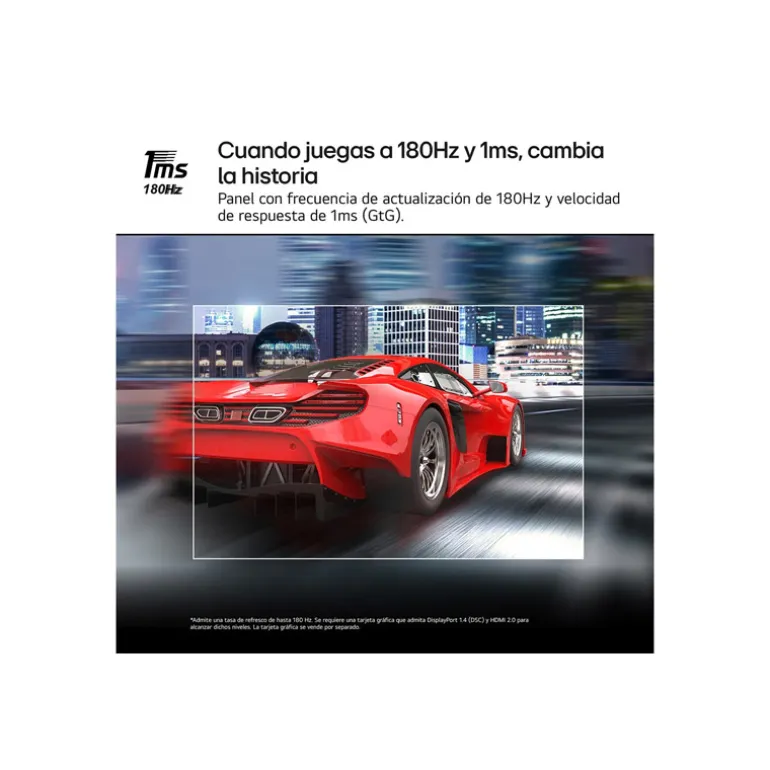 Con la velocidad de 180 Hz del monitor LG UltraGear, podrás disfrutar de imágenes nítidas y fluidas actualizando las imágenes 180 veces por segundo.