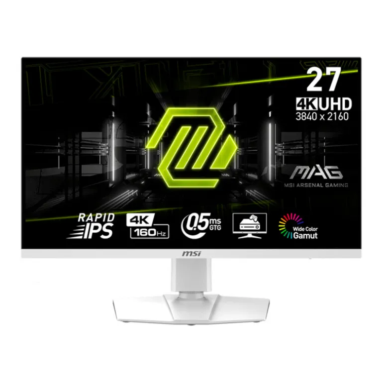 Equipado con un panel IPS rápido UHD (3840 x 2160) de 27″ con una frecuencia de actualización de 160 Hz y un tiempo de respuesta de 0,5 ms (GtG, mín.), el MAG 274URFW ofrece una ventaja competitiva y una calidad de imagen excepcional. El MAG 274URFW cuenta con tecnología Adaptive-Sync, que combina las frecuencias de actualización de la pantalla y la GPU para una experiencia de juego ultra fluida, tecnologías MSI Gaming y un soporte ajustable de 4 posiciones de primera calidad.
