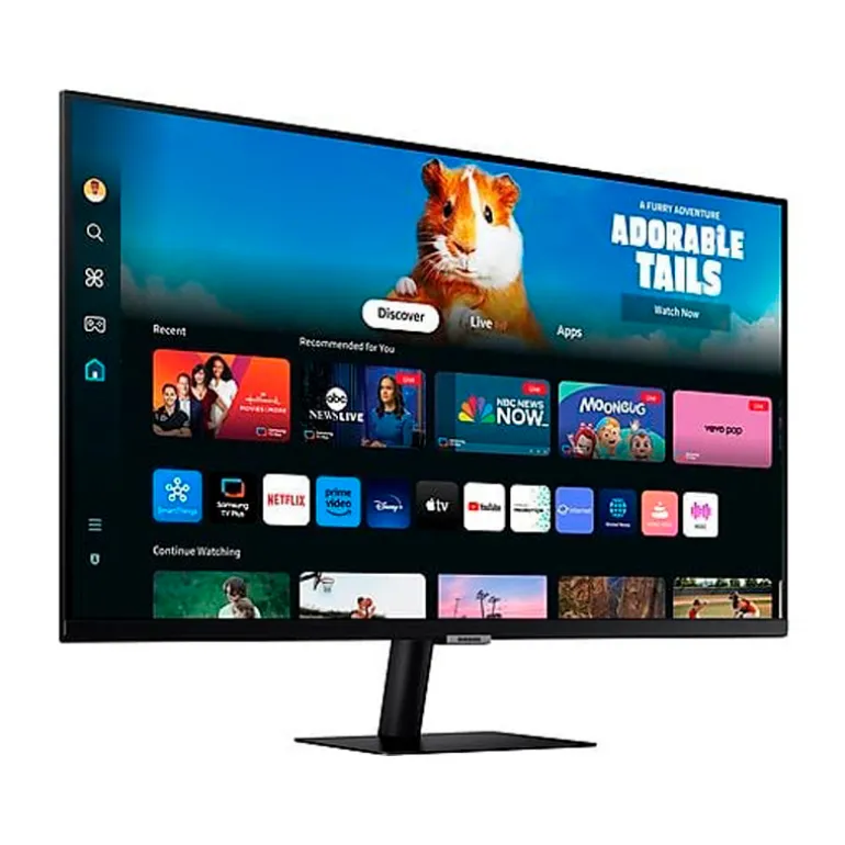 Smart TV Apps. ¿Quieres aprovechar al máximo un espacio pequeño o simplemente tener un segundo televisor? El Smart Monitor es la mejor opción. Disfruta contenido OTT en streaming directamente desde el monitor o entra a Samsung TV Plus para ver canales de televisión en directo y programas bajo demanda sin coste alguno.