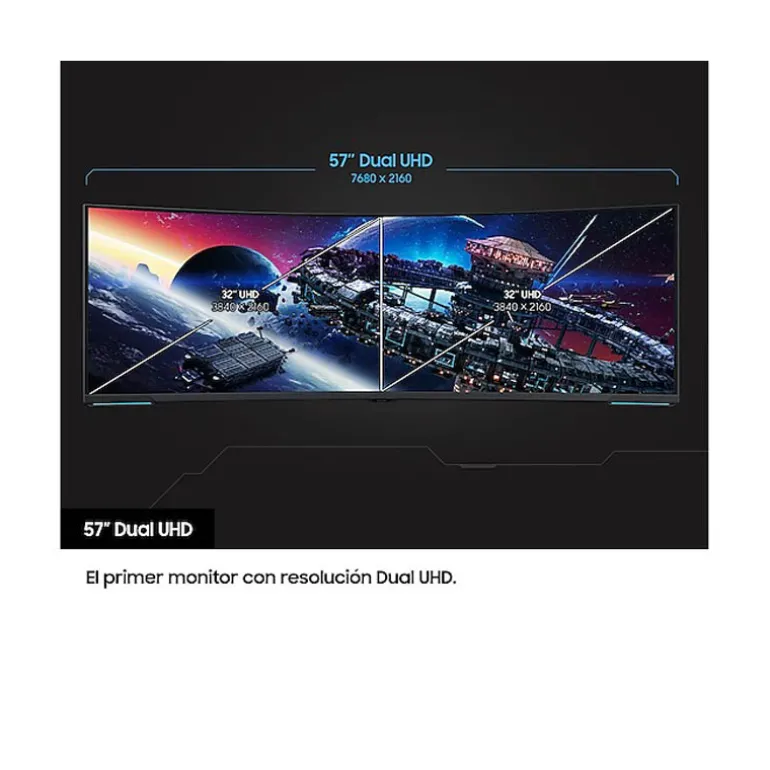 Vive tus juegos con más realidad que el mundo exterior. El primer monitor UHD dual del mundo te envuelve con una pantalla súper amplia de 57″ y una curvatura de 1000R.