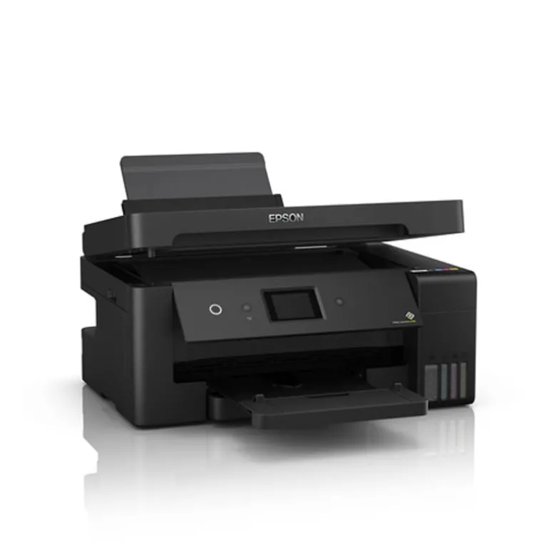 La compacta ET-15000 EcoTank ofrece impresión A4, escaneado, copia y fax, además de la opción de imprimir en A3+ desde el alimentador posterior. Además, gracias a la pantalla LCD puedes imprimir fácilmente sin un ordenador.