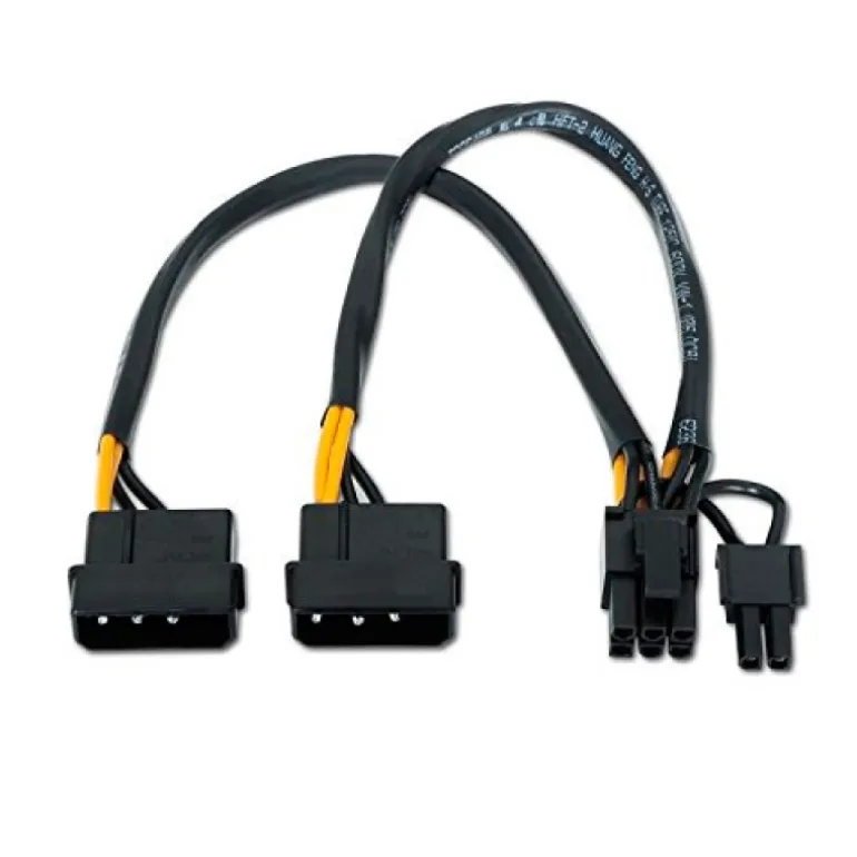 Incluyen dos conectores molex 4 pin macho en un extremo y un conector 6+2 pin macho en el otro