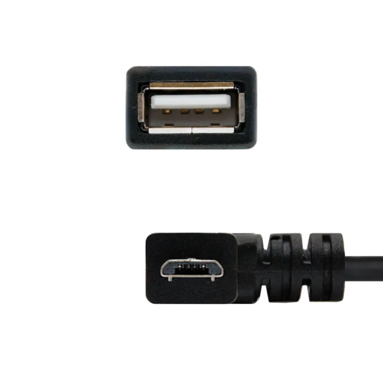 Cable USB Nano Cable USB 2.0 OTG Acodado Tipo Micro B/M-A/H Negro 15cm