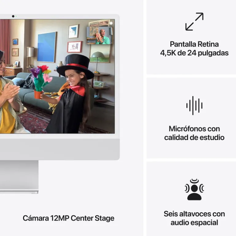 La pantalla Retina 4,5K de 24 pulgadas ofrece 500 nits de brillo y admite hasta 1.000 millones de colores.