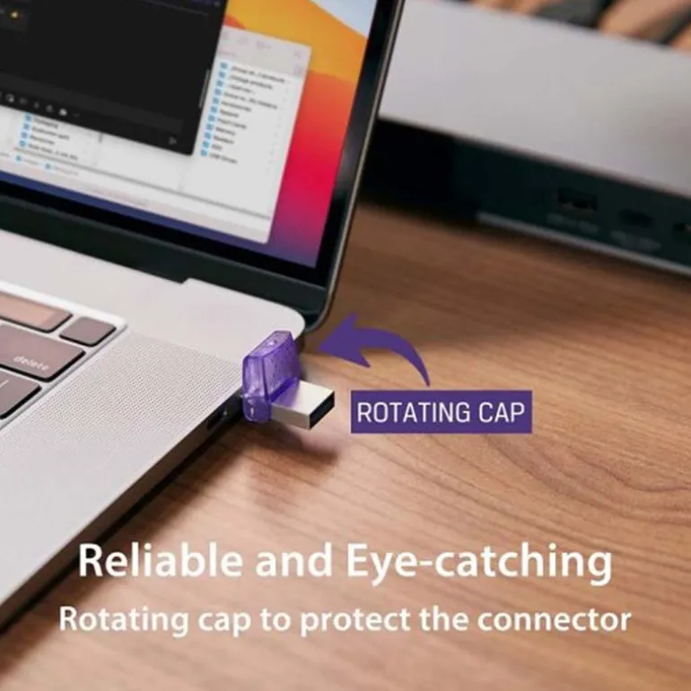 - Formato atractivo: Tapón protector de color con mecanismo giratorio para proteger el conector USB Type-C reversible.