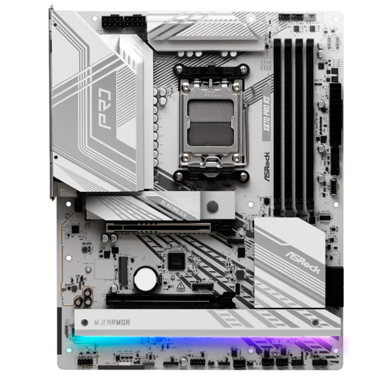 La Placa Base ASRock X870 PRO RS Socket AM5 es una opción ATX avanzada con el chipset X870, ideal para entusiastas y profesionales. Ofrece compatibilidad con PCIe 5.0, múltiples opciones de conectividad USB y tres ranuras M.2 de distintas generaciones, asegurando alta velocidad y versatilidad en almacenamiento y expansión.
