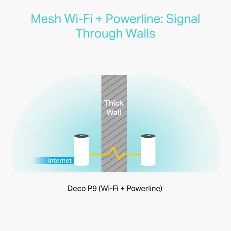 Eliminación de Zonas Muertas: Con la combinación de WiFi de doble banda y red eléctrica, el Deco P9 elimina las áreas débiles de señal y ofrece una conexión estable en todo tu hogar.