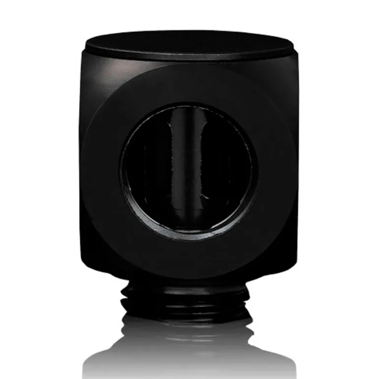 El Thermal Grizzly DeltaMate Rotary 90° es un racor giratorio de latón mecanizado con roscas G1/4″ y juntas de EPDM, diseñado para ofrecer la máxima flexibilidad en circuitos de refrigeración líquida personalizados. Su construcción robusta, acabado premium en cromo negro mate y diseño modular lo convierten en una solución segura y elegante para cualquier configuración.