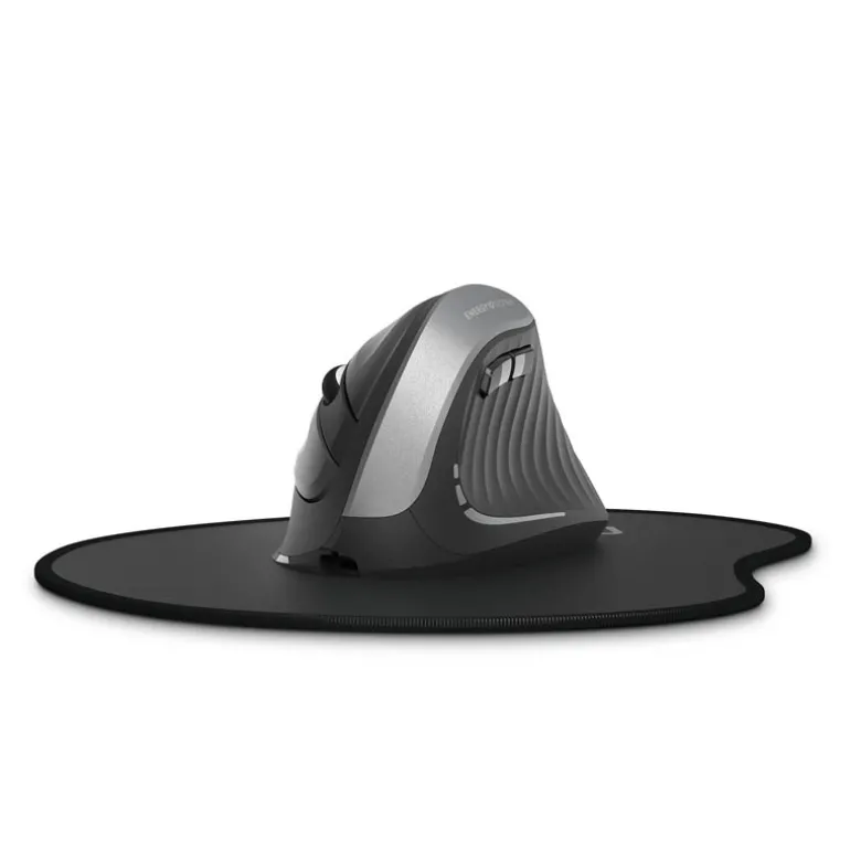 Ratón inalámbrico vertical que reduce la presión en la muñeca y la postura a la hora trabajar con el ordenador, diseño ergonómico y superficie texturizada suave al tacto además de batería interna para olvidarse para siempre de las pilas.