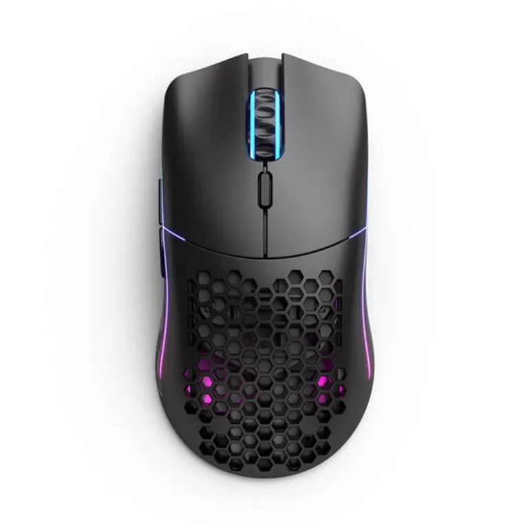 Con un peso de tan solo 65 g, el Model O-Wireless combina ligereza y durabilidad. Su diseño de panal no solo reduce el peso, sino que también mejora la ventilación y permite ver la mecánica interna iluminada por su sistema RGB. La carcasa mate proporciona un agarre firme y cómodo, ideal para largas sesiones de juego. Gracias a su forma ambidiestra, es adecuado tanto para diestros como para zurdos con manos pequeñas o medianas.