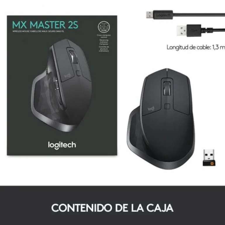 MX MASTER 2S es el ratón de precisión definitivo para usuarios avanzados. Aprovecha la potencia de Logitech FLOW y lleva el uso de varios ordenadores a un nuevo y audaz nivel. Controla hasta tres ordenadores y mueve texto, imágenes y archivos entre ellos a la perfección. Desplázate por documentos y páginas Web con mayor rapidez y facilidad gracias al botón rueda de velocidad adaptable. MX MASTER 2S conserva una carga completa durante más de dos meses. Y en sólo tres minutos obtiene energía suficiente para un día completo de uso. Trabaja prácticamente en cualquier superficie con seguimiento de alta precisión, incluso sobre cristal.* Su forma contorneada creada a mano te permite apoyar la mano y la muñeca en una posición cómoda y natural. * 4 mm de grosor como mínimo.