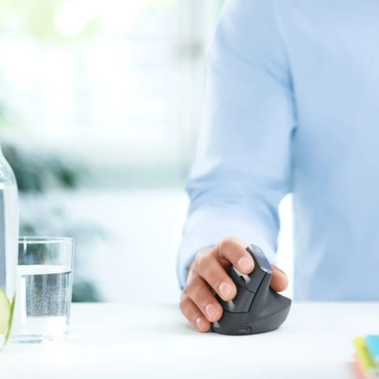 La posición de sujeción natural con MX Vertical reduce la tensión muscular de la mano en un 10% y fomenta una postura más ergonómica.