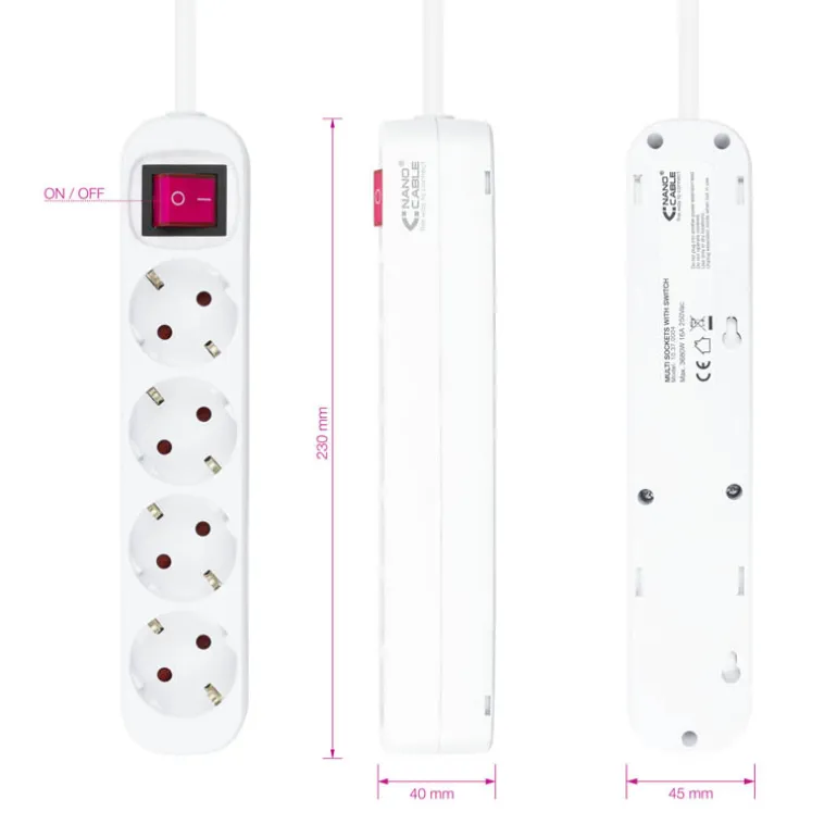 - 1 x Regleta de enchufes de 4 tomas con interruptor, 1.4 m blanca