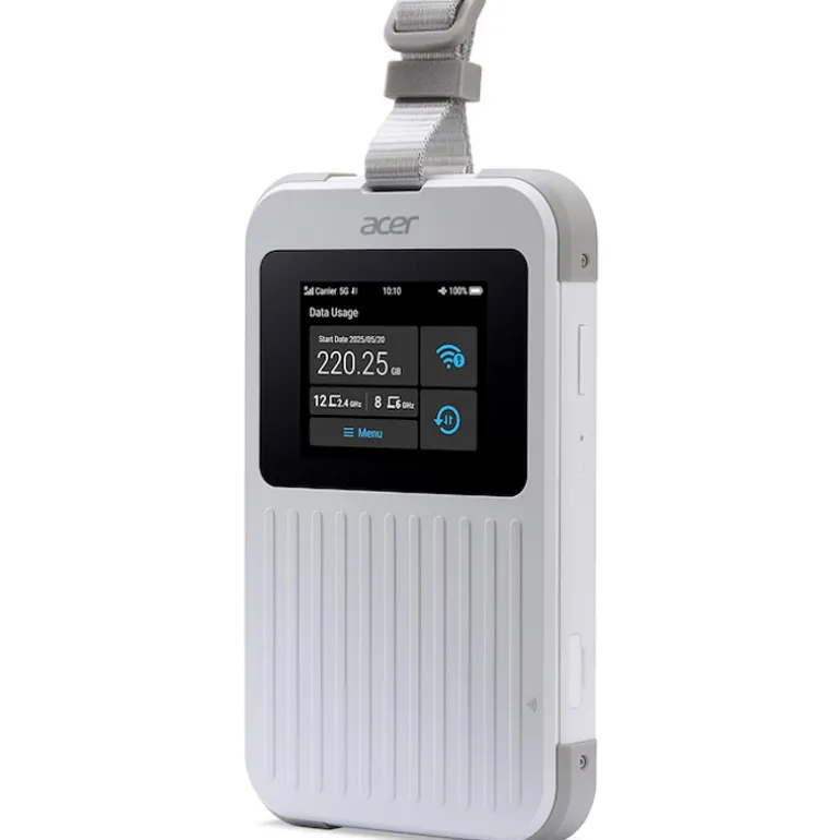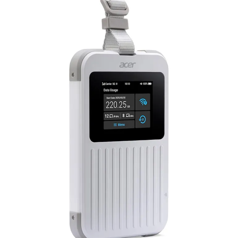 Acer Connect M6E 5G Mobile WiFi Mantente conectado en todas partes Experimenta la conectividad 5G ultrarrápida en cualquier lugar, en cualquier momento y comparte tus conexiones con amigos, familiares o colegas. Gracias a su robusta durabilidad, Acer Connect M6E 5G Mobile WiFi admite varios dispositivos simultáneamente, lo que permite a los usuarios disfrutar de hasta 28 horas de conexión a Internet de alta velocidad ininterrumpida.