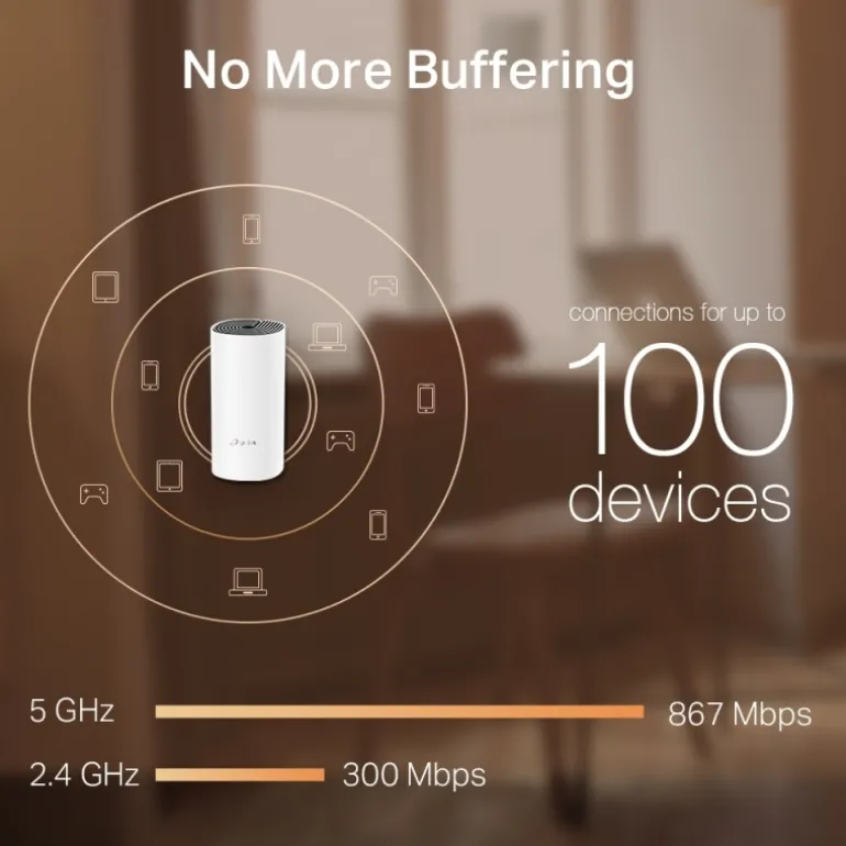 - Deco M4 proporciona conexiones rápidas y estables con velocidades de hasta 1167 Mbps y funciona con los routers de los principales operadores del mercado.