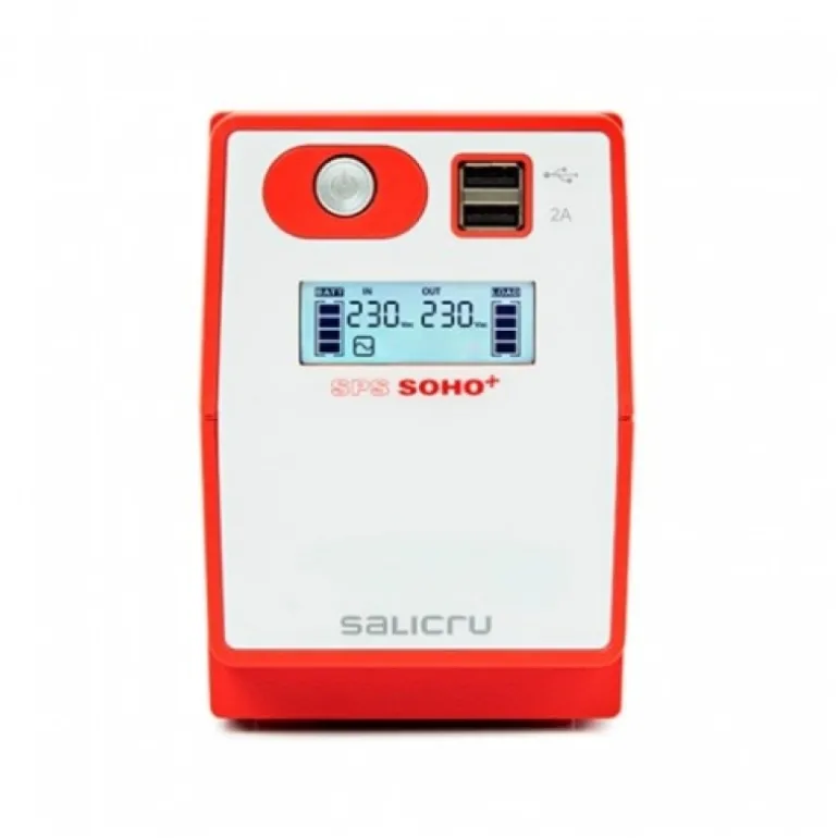 Los Sistemas de Alimentación Ininterrumpida (SAI / UPS) de la serie SPS SOHO+ de Salicru incorporan, como prestaciones más destacables, la tecnología Line-interactive, la compatibilidad con cargas APFC (Active Power Factor Correction) y un doble cargador USB en la parte frontal; todo ello con una potencia de 850 VA y con 2 tomas de salida tipo schuko.