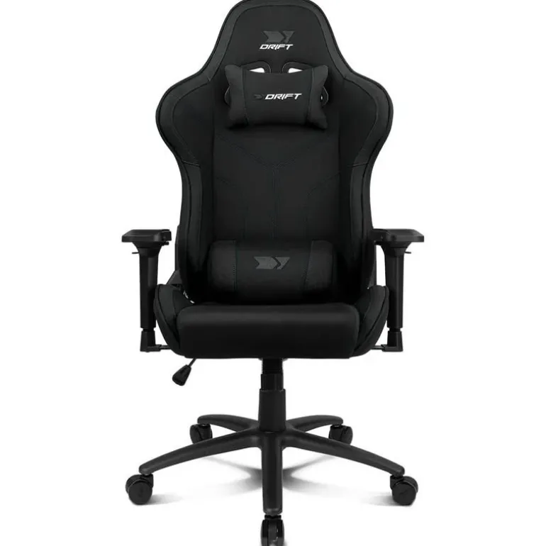 La Drift DR110 es una silla gaming ergonómica con reposabrazos 4D ajustables y acolchados, ideal para largas sesiones de juego. Su tejido transpirable y cojines lumbar y cervical garantizan frescura y comodidad. Ofrece gran resistencia gracias a su base metálica y pistón de gas Clase 4, soportando hasta 150 kg. Además, cuenta con respaldo reclinable hasta 135° y ruedas silenciosas para un movimiento suave.