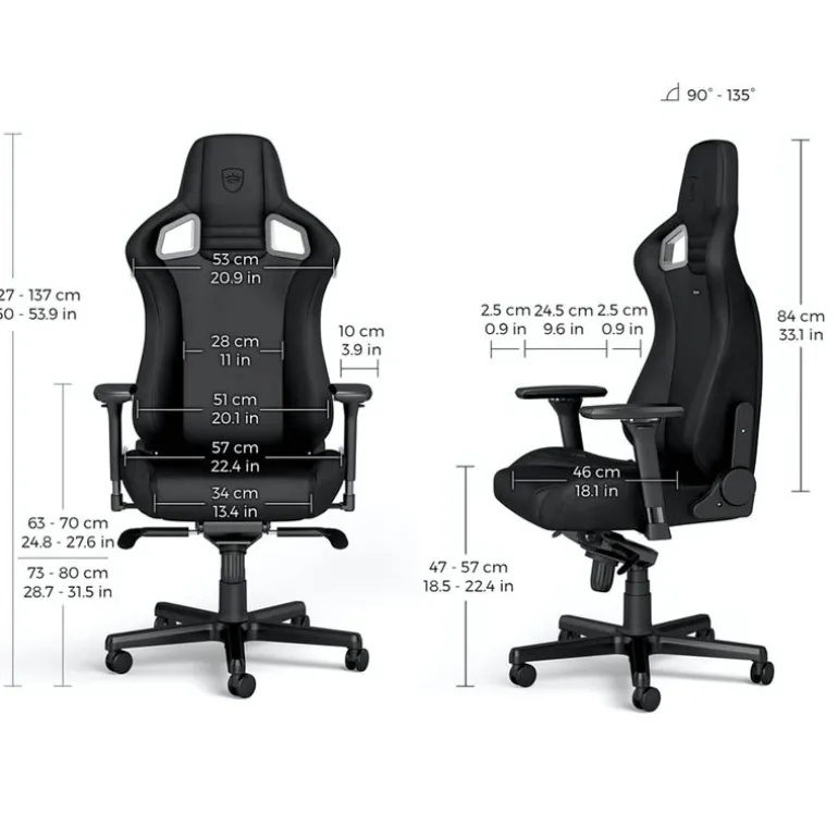 Además de la alta transpirabilidad de noblechairs, la multitud de opciones de ajuste de la silla de juego son la razón principal por la que, una vez que haya experimentado la comodidad, le será difícil separarse de ella. Las sillas de la serie EPIC Black Edition son ajustables en 10 cm de altura. Junto con el mecanismo oscilante ajustable, esto permite reclinar el asiento junto con el respaldo. El resultado final es una silla en la que nada se interpone en el camino de la ergonomía perfecta mientras se juega.