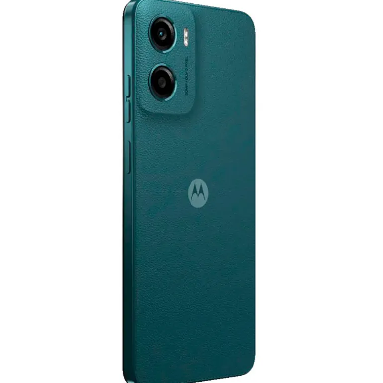 Inmortaliza tus mejores momentos. Disfruta de visualizaciones y sonidos impresionantes con el nuevo moto g05. Ve tus programas y películas favoritos en una pantalla superbrillante de 6,67″, incluso a plena luz del día. Déjate envolver por el sonido de unos altavoces estéreo potentes con refuerzo de graves. Haz fotos maravillosamente definidas, de día o de noche, con el sistema de cámaras Quad Pixel de 50 MP, que integra un modo Retrato con inteligencia artificial. Ve más rápido con un rendimiento ultraeficiente y hasta 12 GB de RAM disponibles con la función Expansión de memoria. Gracias a su diseño con un acabado en cuero vegano, resistente a salpicaduras y derrames de agua, y con cristal Corning® Gorilla® Glass 3, moto g05, marcarás estilo durante años.