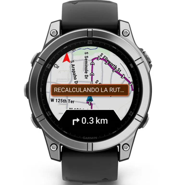 La función de rutas dinámicas de ida y vuelta te permite introducir la distancia que quieres recorrer y recibir sugerencias de rutas para el camino de vuelta. También puedes descargar mapas TopoActive para ver los contornos del terreno y acceder a mapas preinstalados de campos de golf y estaciones de esquí de todo el mundo.