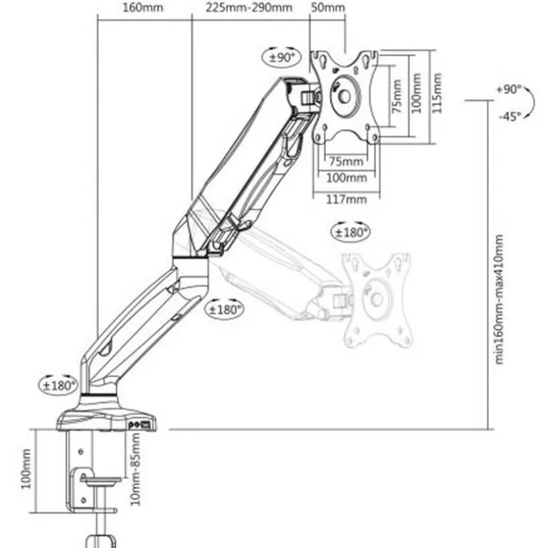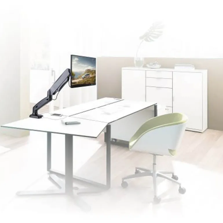 Cree un entorno de trabajo ergonómico y que ahorre espacio utilizando el Soporte de escritorio EW1515 con resorte de gas, totalmente metálico. Coloque el monitor a la altura y ángulo de visión ideales utilizando tan solo una mano gracias a su cómodo sistema de resorte de gas. ¡Ideal para espacios de trabajo flexibles! El soporte de escritorio EW1515 es adecuado para un monitor de hasta 32 pulgadas y entre 2 y 6,5 Kg de peso, y es fácil de acoplar al escritorio a través de un abrazadera o soporte con ranura.