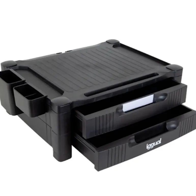 Soporte Monitor iggual EM2C Elevador 2 Cajones Negro