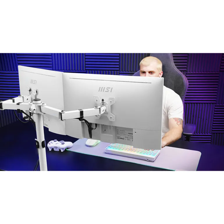 Soporte Monitor Mars Gaming MARM2 DUAL Profesional 13″ A 27″ Hasta 8kg Blanco