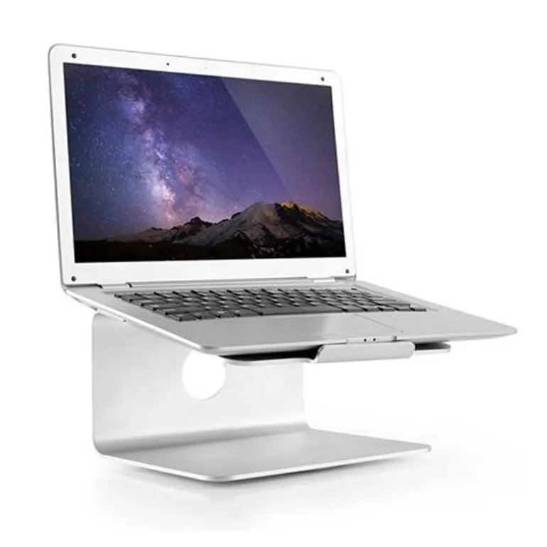 Equipado con una base giratoria de 360 grados, este soporte permite ajustar la orientación de la computadora portátil en segundos, adaptándose a las necesidades de cualquier entorno. Los pies de silicona antideslizantes proporcionan estabilidad adicional y protegen las superficies de posibles arañazos. Además, incluye un orificio en la parte posterior para organizar los cables de manera ordenada y mantener el espacio de trabajo limpio y funcional.