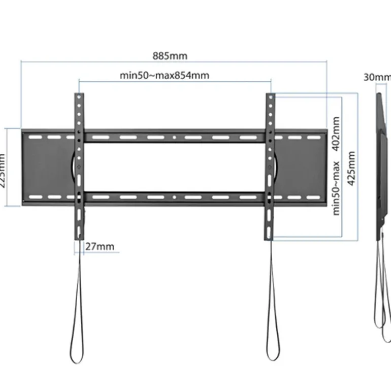 Se trata de un soporte fijo (sin ángulos) con una distancia a pared de solo 30 mm, proporcionando un perfil muy bajo tipo 鈥渃uadro鈥ás de la pantalla, ofreciendo una instalación limpia y elegante.