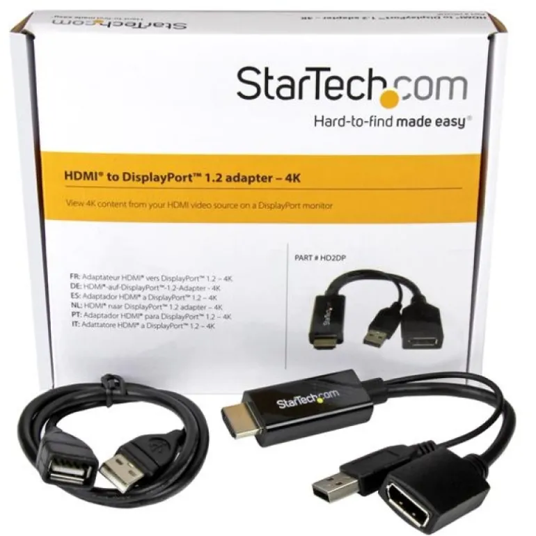 El adaptador activo HDMI a DisplayPort ofrece una fácil configuración plug-and-play, sin necesidad de instalar software ni controladores. El adaptador utiliza un puerto USB para la alimentación, y evita así la necesidad de un adaptador de alimentación adicional. También presenta un diseño compacto que requiere muy poco espacio en su estación de trabajo.