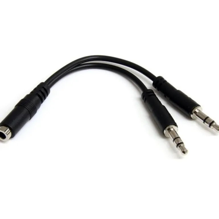 El Adaptador Divisor de Auriculares de 3,5mm de 4 Pines a dos de 3,5mm de 3 Pines, MUYHSFMM dispone de un conector Hembra de 3,5mm y dos Macho de 3,5mm permitiendo conectar un auricular de 4 pines con Audio y Micrófono a su PC o Laptop. Este Adaptador Divisor de Auriculares de 3,5mm se conecta a los puertos de audio y micrófono del ordenador de sobremesa o portátil, proporcionando un conector hembra (4 pines) – una solución perfecta para juegos online para aplicaciones VOIP (Skype, programas de chat). Su diseño compacto y robusto a la vez lo convierten en la opción ideal para aplicaciones que requieren portabilidad, ocupando un espacio mínimo en el bolso de su laptop. El adaptador divisor de auriculares 2x Macho y 1x Hembra de StarTech.com ofrece garantía de por vida.