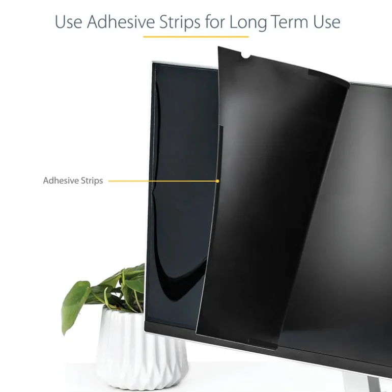 La pantalla de privacidad del monitor es fácil de colocar y quitar. Simplemente conecte la pantalla de privacidad de 24 pulgadas a su pantalla de relación de aspecto 16:10 usando las tiras de fijación o las pestañas de montaje deslizante. Este filtro de pantalla de confidencialidad también es reversible. El lado mate le brinda reducción de reflejos y el lado brillante de la pantalla de privacidad le brindará una mayor claridad.