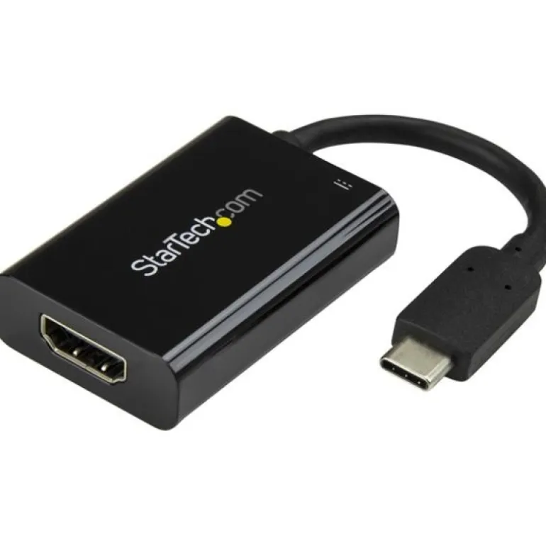 Los ordenadores portátiles de tamaño más pequeño y peso más ligero son fabulosos en cuanto a portabilidad, pero con la desventaja de tener menos puertos de conectividad. Este adaptador de vídeo USB-C es compatible con la entrega de potencia por USB hasta 60W e incluye un puerto USB-C adicional, a fin de poder cargar su ordenador portátil con el adaptador de alimentación USB-C, incluso mientras transmite vídeos de salida. Muchos ordenadores portátiles como Dell XPS y MacBook Pro son compatibles con la carga a través de su puerto USB-C mediante entrega de potencia por USB; consulte las especificaciones de su equipo para confirmar si es compatible.