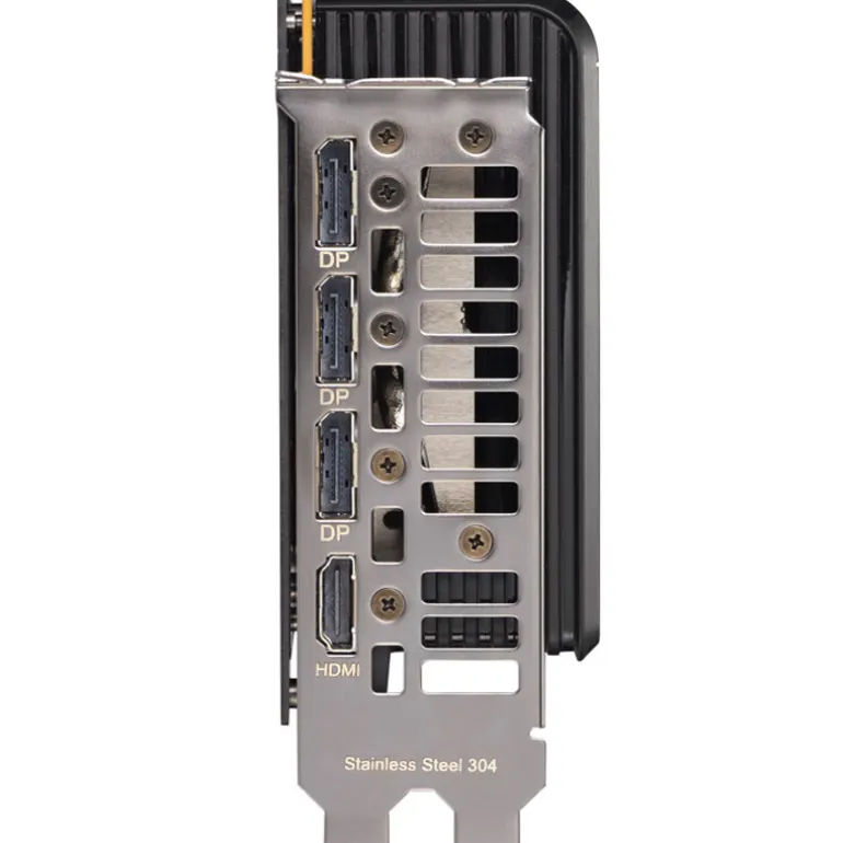 Incluye un puerto HDMI 2.1b y tres DisplayPort 2.1b, soportando hasta cuatro monitores con resolución máxima de 7680×4320 a 60 Hz y compatibilidad con HDCP 2.3 para contenido protegido.