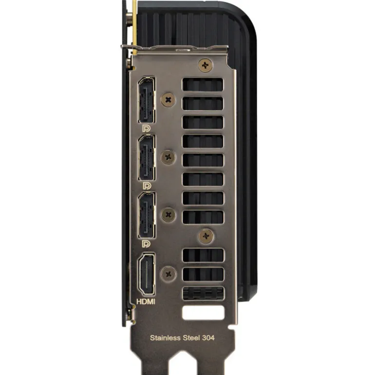 Las grandes rejillas de ventilación de la placa posterior mejoran significativamente la disipación de calor, lo que ayuda a mantener la GPU más fría durante las tareas intensas. Este flujo de aire adicional ayuda a garantizar temperaturas óptimas, aumentando el rendimiento, la longevidad y la estabilidad al defenderse contra el sobrecalentamiento y el estrangulamiento térmico.