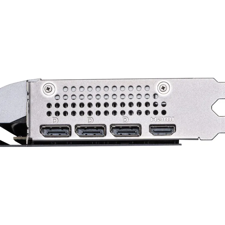 La placa posterior de metal refuerza la estructura de la tarjeta gráfica mientras contribuye a una refrigeración más eficiente. Además, incorpora aberturas de flujo de aire y almohadillas térmicas, lo que mejora la disipación del calor y evita que se acumule en las áreas más sensibles de la tarjeta. Este diseño ayuda a distribuir de manera más equitativa el calor generado durante el uso intensivo, protegiendo los componentes internos y extendiendo la vida útil de la tarjeta gráfica al mantenerla en condiciones de temperatura óptimas.