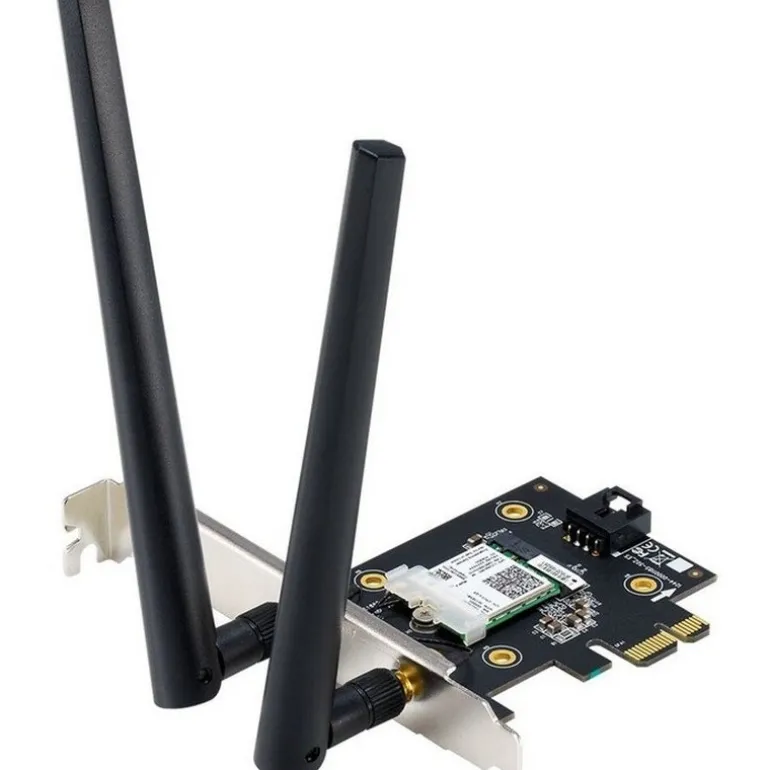 PCI-E WiFi 6 (802.11ax) AX3000 de doble banda. Soporta 160 MHz, Bluetooth 5.0, seguridad de red WPA3, OFDMA y MU-MIMO