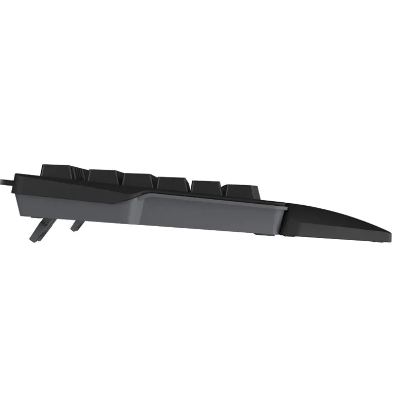El Rhod 350 RGB está equipado con un reposamuñecas desmontable. Sus patas plegables permiten elegir el ángulo adecuado del teclado, y sus bases antideslizantes garantizan que el dispositivo permanezca en su sitio incluso durante los movimientos más exigentes. Apuesta por soluciones fiables y benefíciate de ellas.