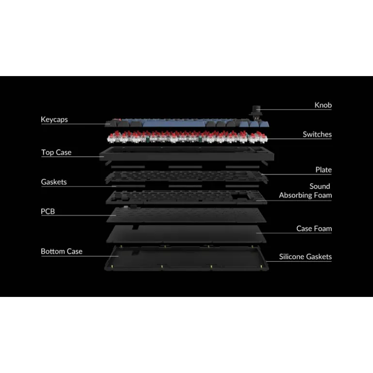 Para construir un teclado completamente personalizable, diseñamos cada componente para que pueda ensamblarse fácilmente. Por lo tanto, puedes personalizar y ajustar cada componente a tu gusto.
